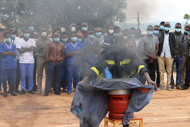 Uyumunsi kuwa 05/02/2022 abakozi bi ibitaro bya akarere byA KIZIGURO bahawe amahugurwa kubijyanye no kuzimya inkongi y'umuriro yatanzwe n'